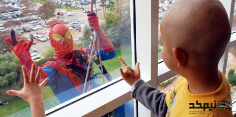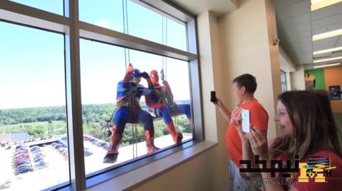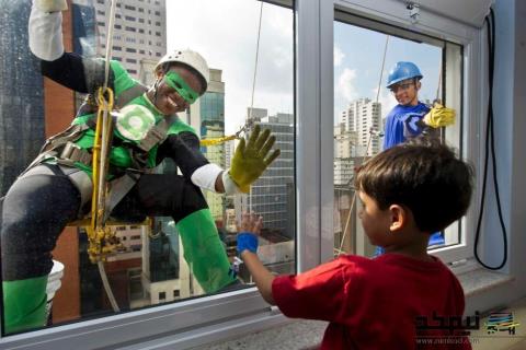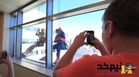 ابر قهرمانان شستن پنجره ها در بیمارستان کودکان