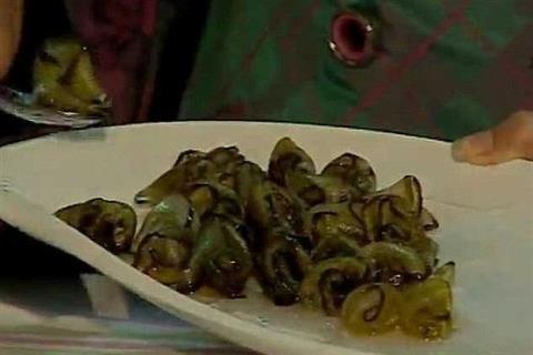 خیارها رو با پوست کن نازک برش میدیم (با پوست)واونها رو به شکل رز درآورده وبا خلال دندون از چند جهت فیکس کنید وآهک رو توی آب حل کنید وصاف کنید