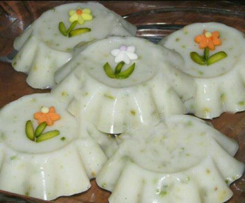 ▪️خامه....................... 100 گرم ▪️عرق هل.................. 2 قاشق سوپخوری ▪️آب......................... 1 لیتر ▪️نشاسته..................... 200 گرم ▪️شکر....................... 200 گرم ▪️گلاب...................... نصف پیمانه ▪️پودر پسته.................. 4 قاشق غداخوری