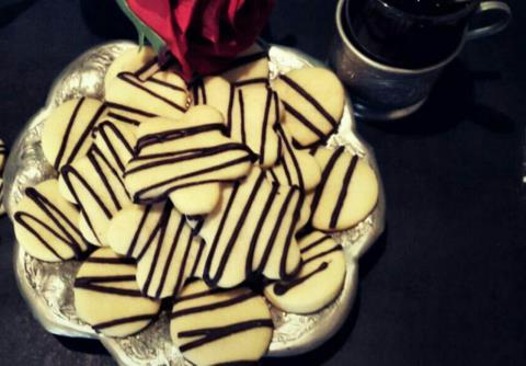 آرد وپودر شکر را مخلوط کرده.کره ی سرد را اضافه میکنیم وبا دست مواد را مخلوط کرده وکمی ورز میدهیم تاجایی که مثل خرده نان بشود.سپس تخم مرغ را اضافه کرده وکاملا مخلوط میکنیم تا خمیر نرم ولطیفی که به دست نچسبد؛حاصل شود. اگر خمیر شل بود وحالت چسبندگی داشت ؛کمی آرد اضافه میکنیم. سپس خمیر را داخل کیسه فریزر گذاشته وبه مدت 1ساعت دریخچال گذاشته تا استراحت کند. بعداز زمان استراحت.خمیر را بین نایلون باوردنه به قطر 3تا4 میل باز کرده وقالب زده(قالب کوچک) روی سینی قرار میدهیم .درسینی کاغذ روغنی گذاشته شود.سپس داخل فر از قبل گرم شده با دمای 180درجه به مدت 20دقیقه ؛قرار میدهیم. از فر که بیرون آوردیم با شکلات تخته ای آب شده تزیین میکنیم.